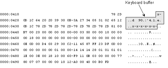 3. Now do a dump of memory at the address of the keyboard buffer.
